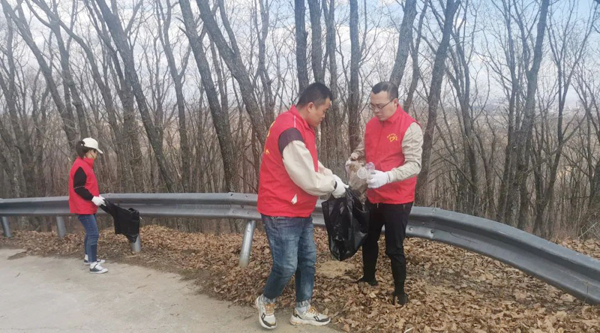 大家自備手套、水靴、剪刀、袋子、皮繩等清掃工具,從石青山的山腳下開始,對環(huán)山路兩側(cè)的垃圾進(jìn)行全面清理、裝運。有的鉆入樹林,撿拾白色垃圾;有的摘除破損條幅,更換新貌;有的收堆、撐袋,將垃圾裝車運走。醒目的條幅標(biāo)語,飄揚的志愿服務(wù)隊隊旗,鮮紅的志愿者身影,忙碌的勞動場面,構(gòu)成了一幅五彩斑斕的畫卷。