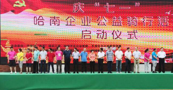 為紀(jì)念建黨97周年,由平房區(qū)兩新工委、哈經(jīng)開區(qū)企業(yè)黨委、區(qū)文化體育旅游局主辦的“慶七一”哈南企業(yè)公益騎行活動于2018年6月30日在哈南健身廣場隆重舉行。平房區(qū)委書記、哈經(jīng)開區(qū)黨工委書記劉興閣為巡游隊(duì)伍發(fā)令、領(lǐng)騎。區(qū)委副書記李兵代表區(qū)委、區(qū)政府為活動致辭。公司黨委副書記、工會主席董志宏出席啟動儀式。