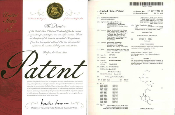 珍寶島9月25日發(fā)布公告,黑龍江珍寶島藥業(yè)股份有限公司(以下簡(jiǎn)稱(chēng)“公司”)收到美國(guó)專(zhuān)利局頒發(fā)的《專(zhuān)利授權(quán)證書(shū)》。該《專(zhuān)利授權(quán)證書(shū)》的獲得,是穿心蓮內(nèi)酯改構(gòu)化合物首次在國(guó)際方面獲得專(zhuān)利,也是公司獲得的第三個(gè)美國(guó)專(zhuān)利。
