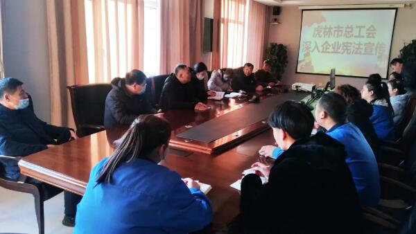 市總工會向員工們發(fā)放了宣傳資料,王寶銀副書記講解了憲法頒布實施的背景、推行憲法的目的和意義。他強調(diào),憲法是國家的根本法,是治國安邦的總章程,具有最高的法律地位、法律權(quán)威、法律效力。全面貫徹實施憲法,是全面推進(jìn)依法治國、建設(shè)社會主義法治國家的首要任務(wù)和基礎(chǔ)性工作。全國各族人民、一切國家機關(guān)和武裝力量、各政黨和各社會團(tuán)體、各企業(yè)事業(yè)組織,都必須以憲法為根本的活動準(zhǔn)則,并且負(fù)有維護(hù)憲法尊嚴(yán)、保證憲法實施的職責(zé)。任何組織或者個人都不得有超越憲法和法律的特權(quán),一切違反憲法和法律的行為都必須予以追究。